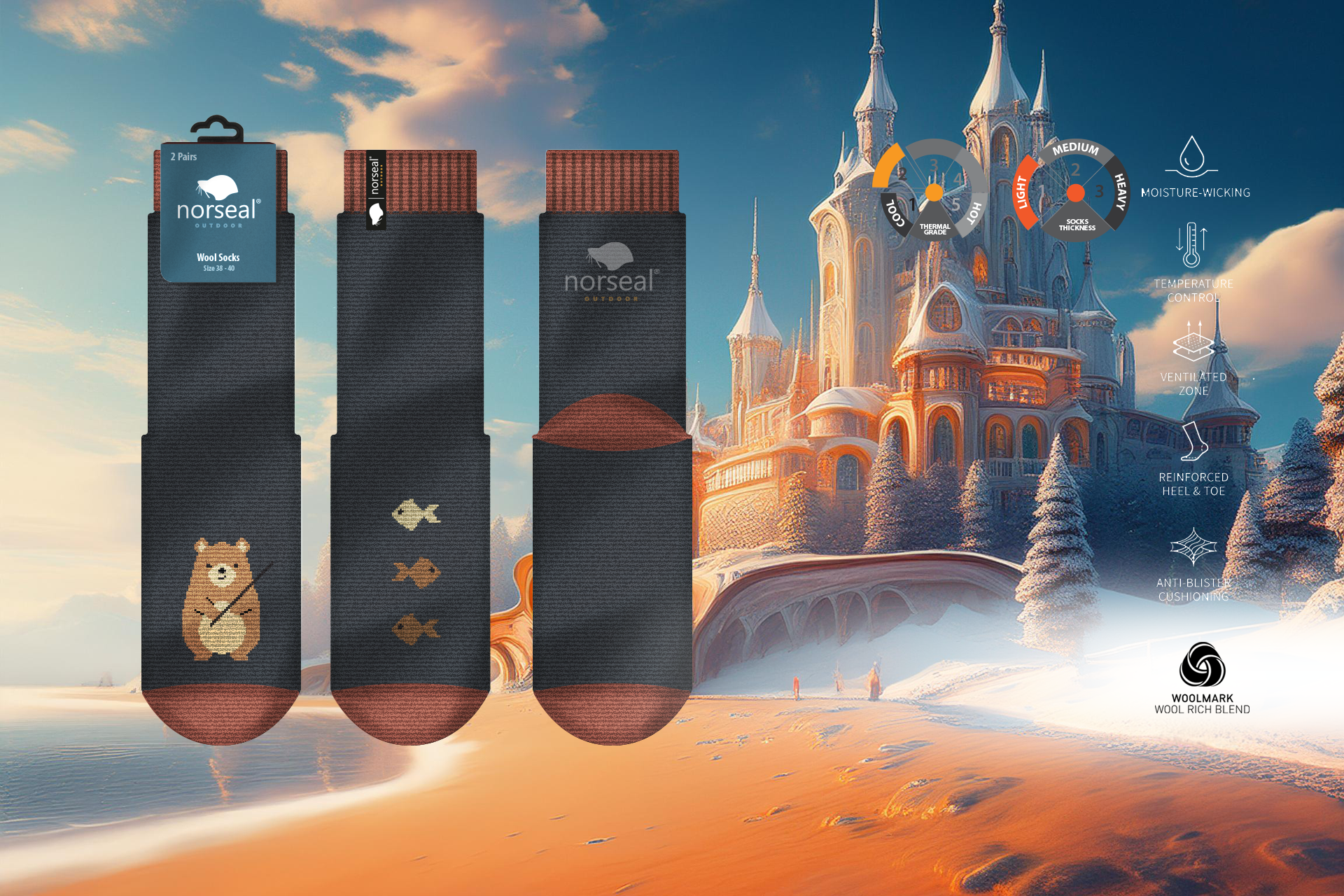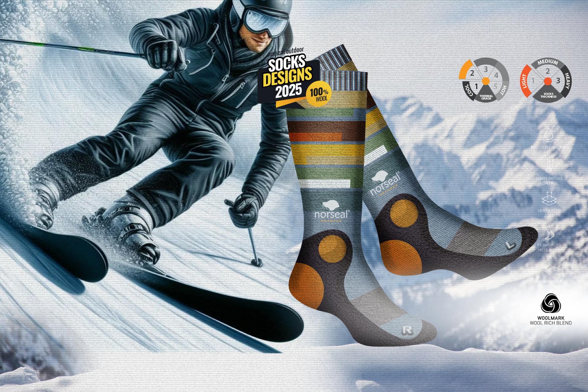 Designed for skiing, hiking, trekking, cycling, and equestrian activities, our wool-rich socks feature reinforced areas for extra support and protection.
